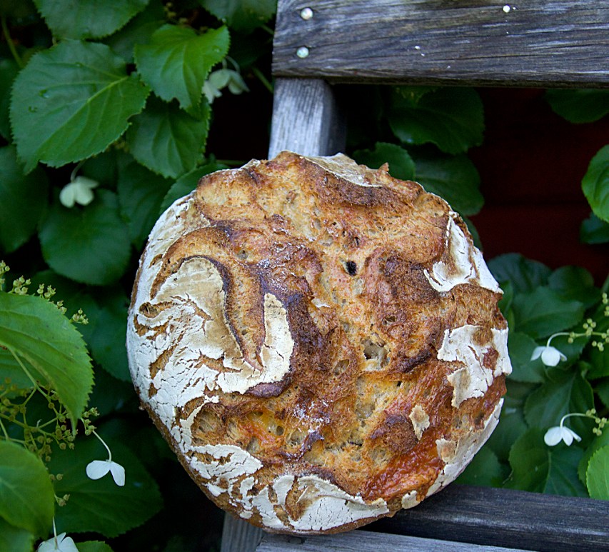 Vilken fin midsommar det har varit. Vi har haft besök av kära vänner som just flyttat hem från USA och var jetlaggade. Passade perfekt eftersom jag själv var mitt uppe i ett arbetspass med långa dagar. Eftersom alla var lika trötta infann sig en opretentiös stämning där alla hjälptes åt med mat och disk. Här ska ni få receptet på årets midsommarbröd, med purjolöksaska, rostat nakenkorn och Kvibille cheddar. Fortsätt läsa Midsommarbröd med cheddar och purjolöksaska